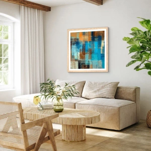 Pôster com moldura de carvalho claro - Através da cortina azul - 50x70 cm