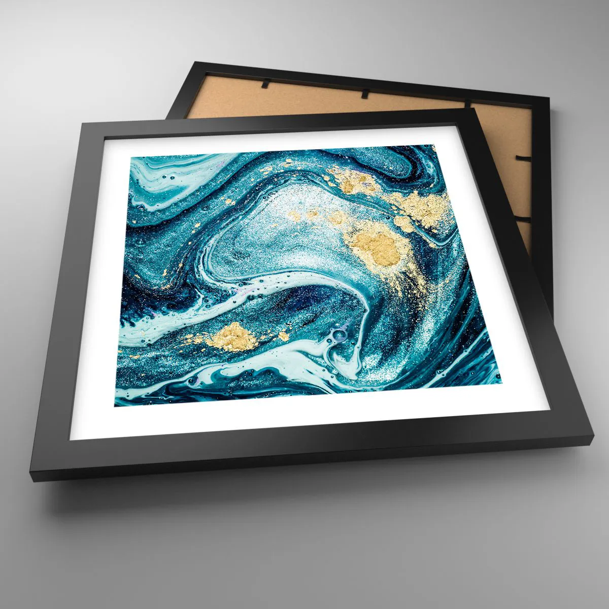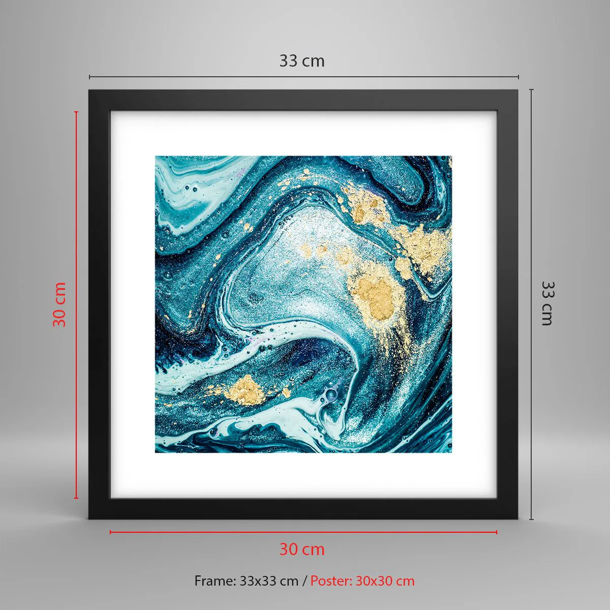 Pôster com moldura preta - Redemoinho azul - 30x30 cm