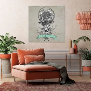 "Visão de São Hubertus" é uma pintura em tela exclusiva de 70x50 cm que representa um retrato geométrico de um cervo com a inscrição "Vida Selvagem", feita em estilo vintage. Cores sutis, como bege e azul, e detalhes geométricos conferem à composição um caráter elegante e moderno. Este design único combina um motivo natural com o minimalismo, criando uma decoração que chama a atenção.
