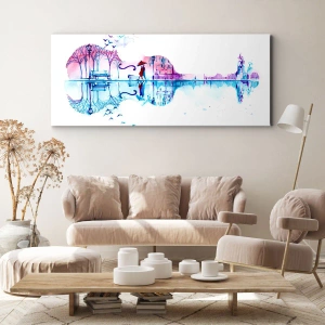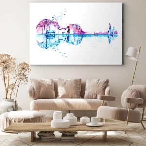 A pintura funcionará perfeitamente como decoração de parede em espaços que valorizam a arte contemporânea e temas únicos. Seu caráter calmo e estilo artístico complementarão perfeitamente espaços como sala de estar, escritório ou quarto. Também é uma escolha ideal para amantes da música e para quem procura elementos decorativos extraordinários.