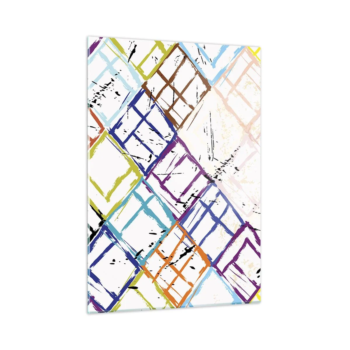 O quadro em vidro é feito de vidro de 4mm de espessura. As bordas do vidro têm um corte trapezoidal fosco. O quadro é segura de usar e pronto para pendurar – tem ganchos de metal presos à parte de trás do quadro e e espaçadores de espuma para regular a distância uniforme do quadro da parede.