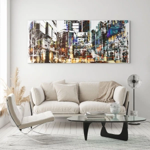 Quadro em vidro - Luzes coloridas da cidade em um estilo artístico e cintilante - 70x50cm - Cidade cintilante - Decoração de parede moderna para a sala de estar e quarto ARTTOR