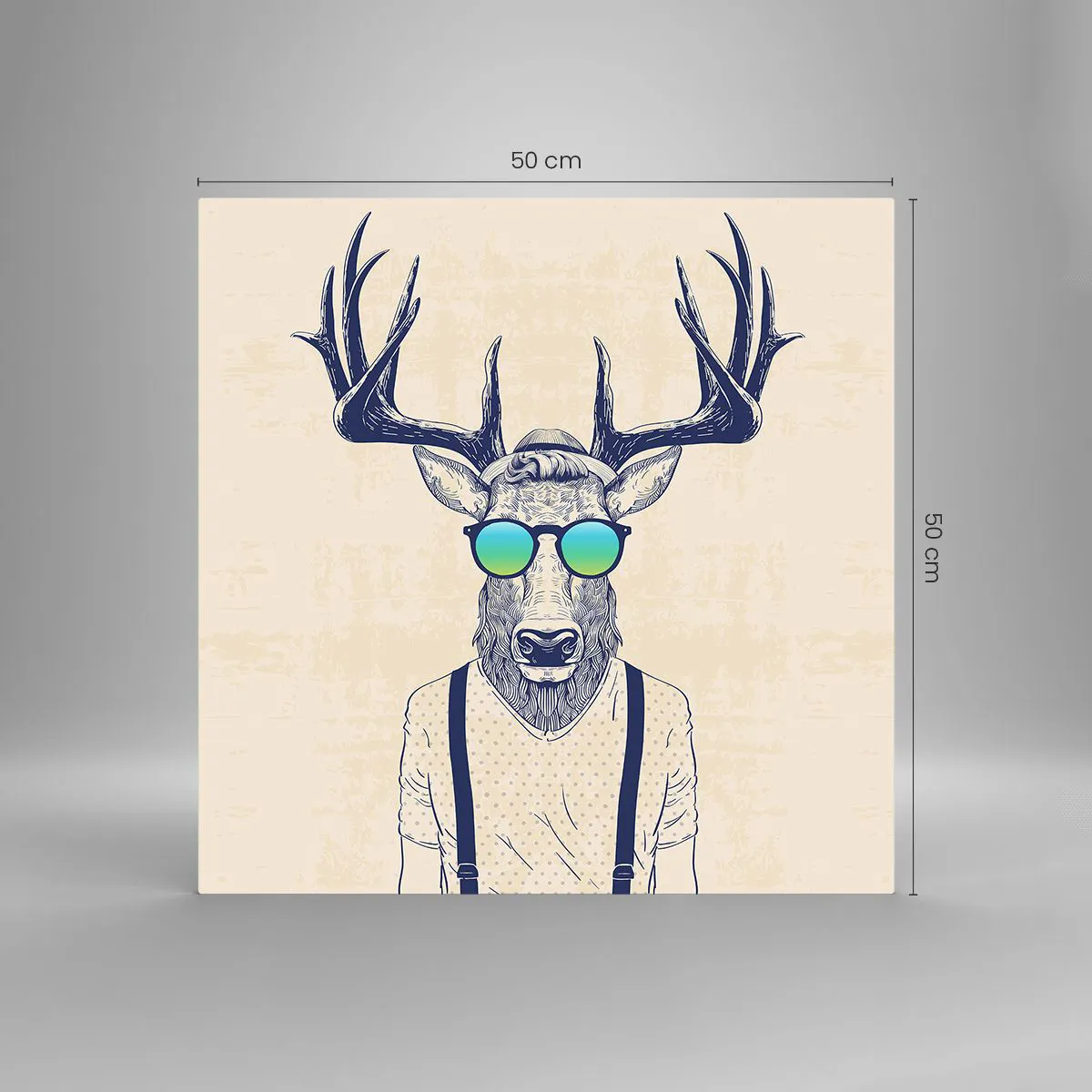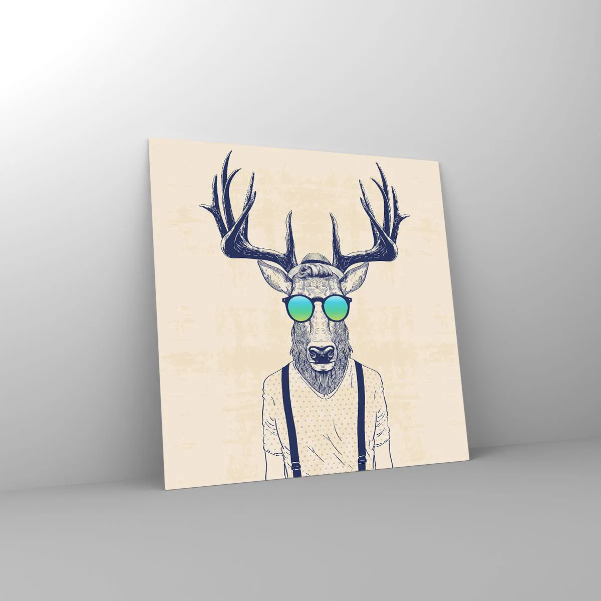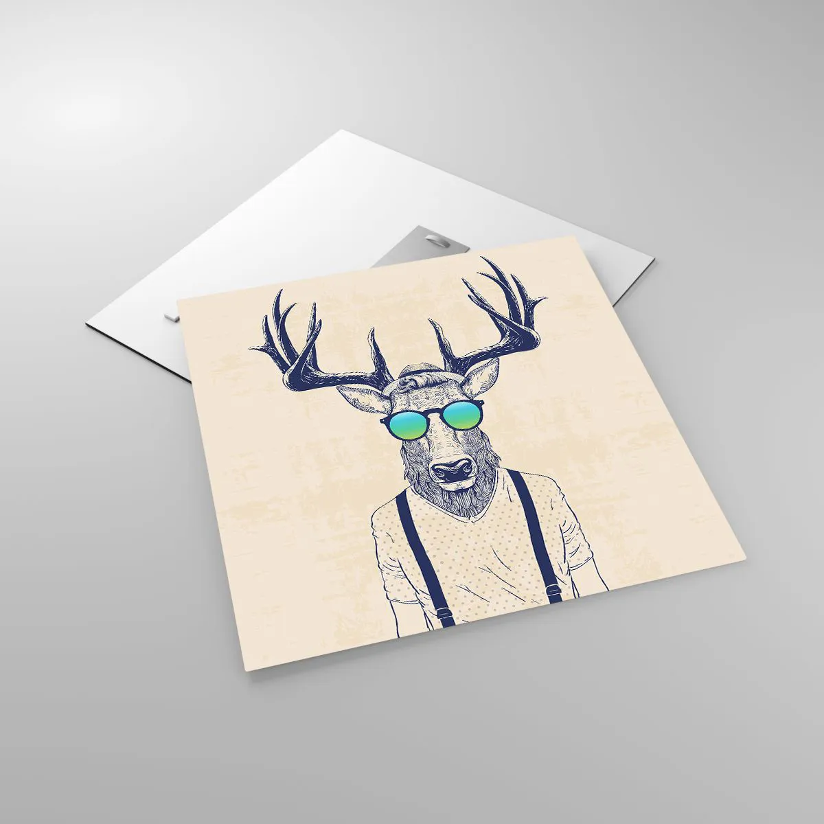 O quadro em vidro é feito de vidro de 4mm de espessura. As bordas do vidro têm um corte trapezoidal fosco. O quadro é segura de usar e pronto para pendurar – tem ganchos de metal presos à parte de trás do quadro e e espaçadores de espuma para regular a distância uniforme do quadro da parede.
