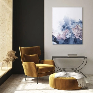 Quadro em vidro - Montanhas em aquarela em tons pastéis de azul e rosa - 70x50cm - Estes são os verdadeiros picos! - Decoração de parede moderna para a sala de estar e quarto ARTTOR