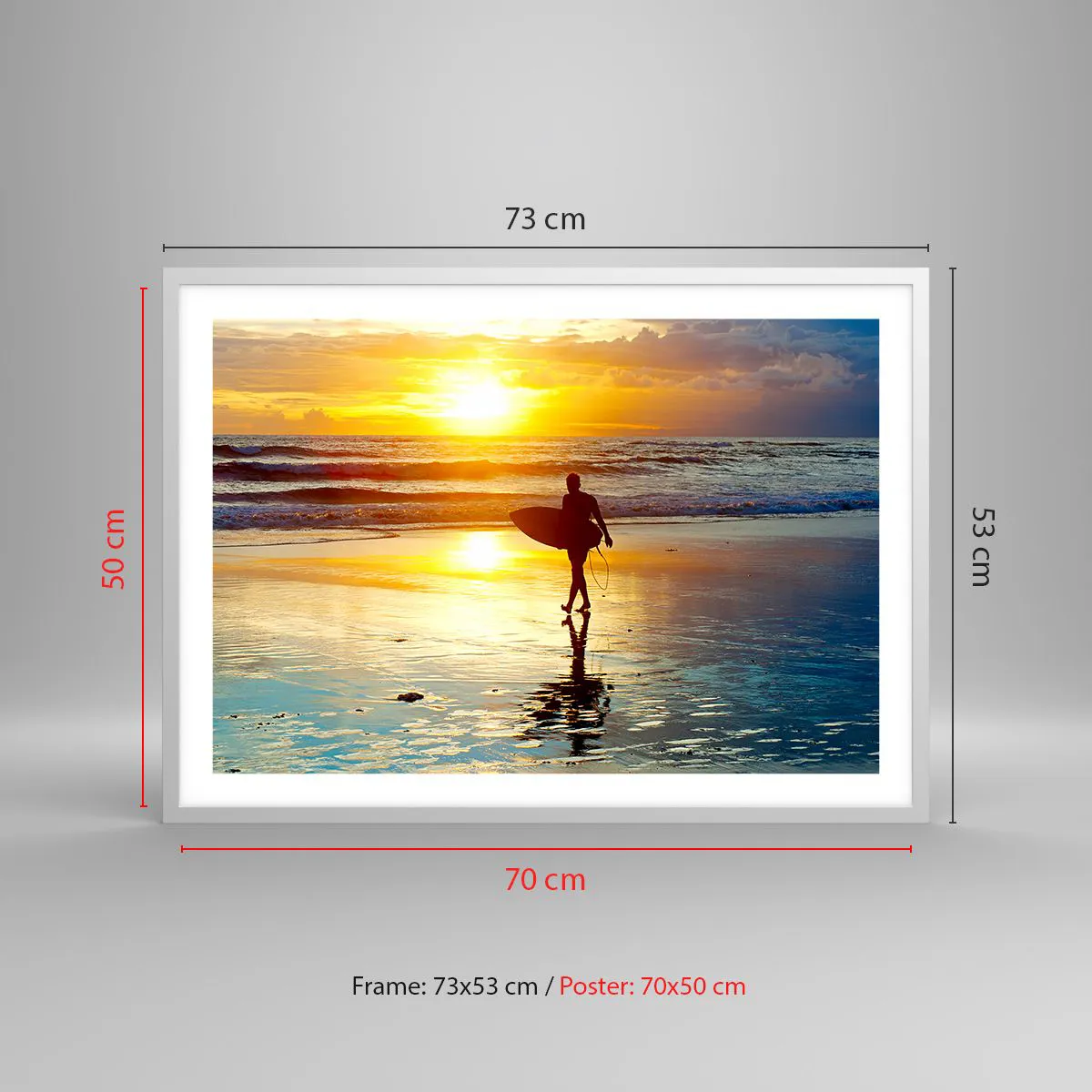 O pôster emoldurado está pronto para ser pendurado na parede. Impressão feita em papel Premium de alta qualidade com um peso de 200g/m2. A estrutura moderna e elegante é feita de MDF com uma largura de 2 cm. A parte de trás da imagem é protegida por um painel HDF rígido, com uma espessura de 2mm. O pôster emoldurado é leve e tem um gancho para uma montagem conveniente. Cada moldura está equipada com um vidro transparente leve e à prova de quebras, feito de plexiglass acrílico.