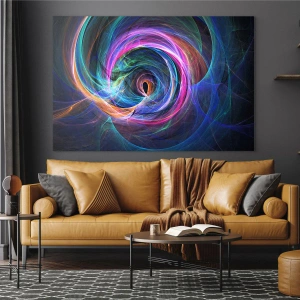 Quadro em vidro - Uma espiral abstrata em cores intensas sobre um fundo escuro. - 70x50cm - Para onde quer me levar? - Decoração de parede moderna para a sala de estar e quarto ARTTOR