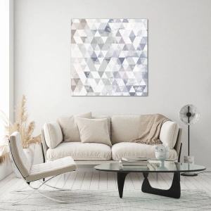 O quadro em vidro é feito de vidro de 4mm de espessura. As bordas do vidro têm um corte trapezoidal fosco. O quadro é segura de usar e pronto para pendurar – tem ganchos de metal presos à parte de trás do quadro e e espaçadores de espuma para regular a distância uniforme do quadro da parede.