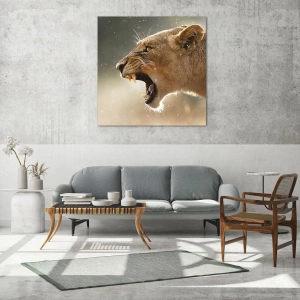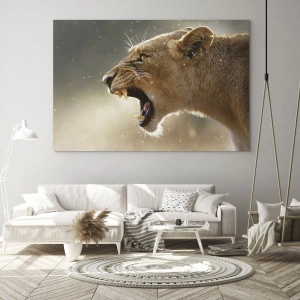 - Esta pintura artística retrata um leão rugindo, capturado pelos raios de sol. Ela destaca perfeitamente a beleza da natureza e sua natureza selvagem, perfeita para interiores modernos.