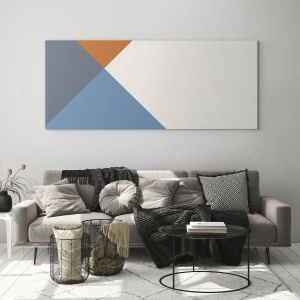 O elemento central do quadro são triângulos em vários tons pastel, que criam uma composição dinâmica e equilibrada. A forma simples e as cores sutis conferem à peça elegância e um caráter universal, tornando o quadro adequado para uma variedade de designs de interiores.