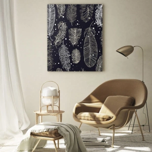 Impressão de Arte de Parede - Renda com Penas - Penas Brancas em Fundo Preto com Detalhes Sutis
