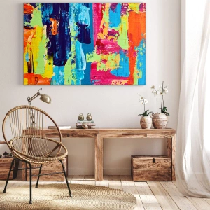 • Uma composição vibrante e abstrata, repleta de cores vibrantes e formas dinâmicas. Uma decoração perfeita para interiores modernos, que traz energia e estilo original.
