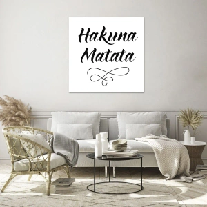- A inscrição decorativa "Hakuna Matata" sobre fundo branco simboliza uma vida sem preocupações. Um design minimalista repleto de energia positiva, perfeito para interiores modernos e inspiradores.