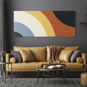 Quadro em vidro - Arcos coloridos abstratos em um fundo de vidro - 70x50cm - Um para o outro - Decoração de parede moderna para a sala de estar e quarto ARTTOR