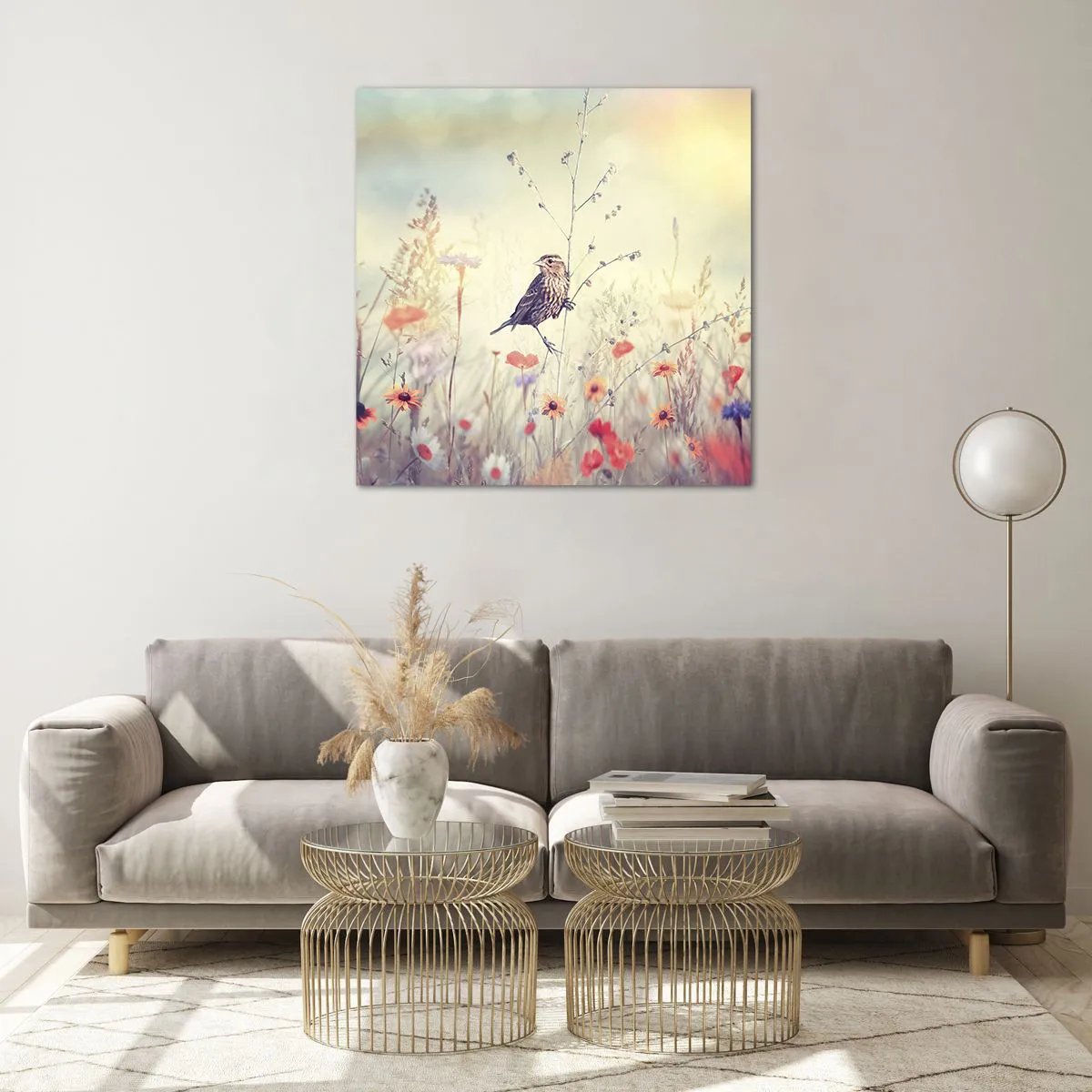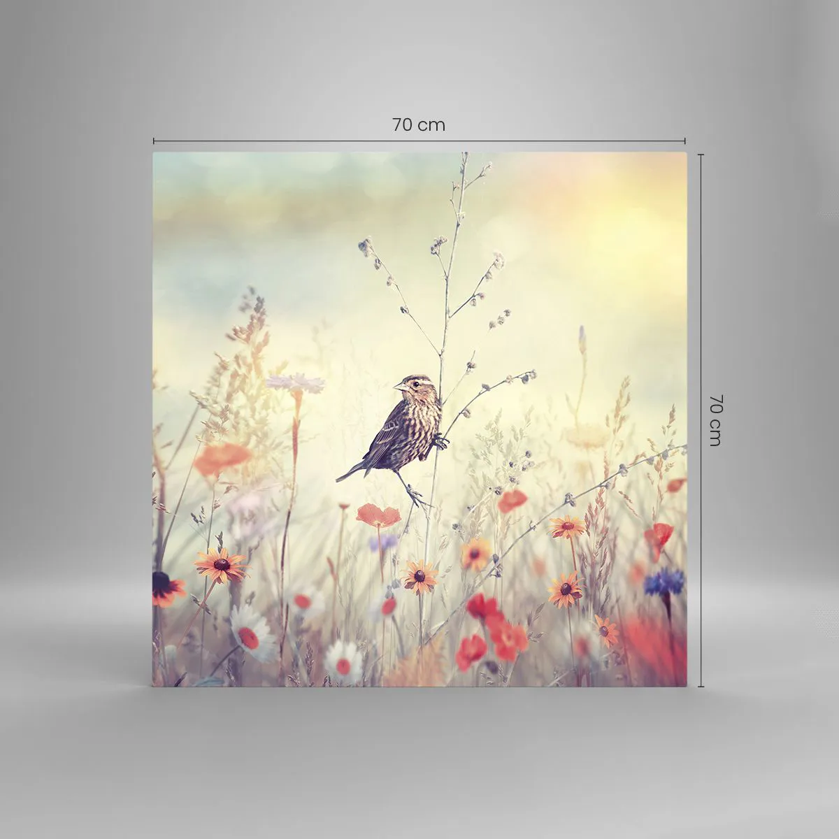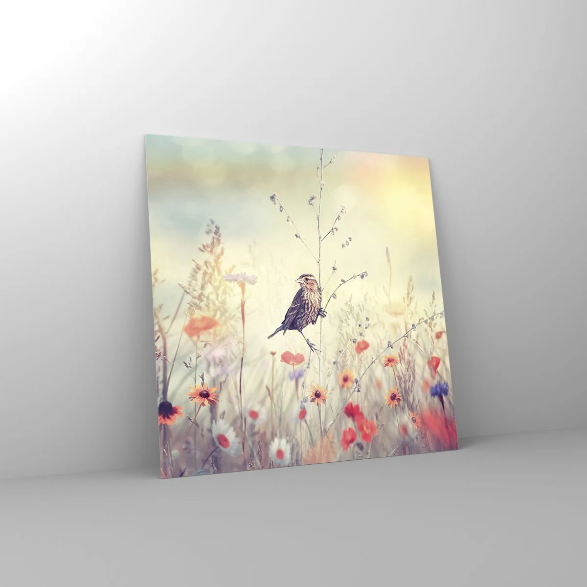 Quadro em vidro - Retrato de um pássaro com um prado no fundo - 70x70 cm