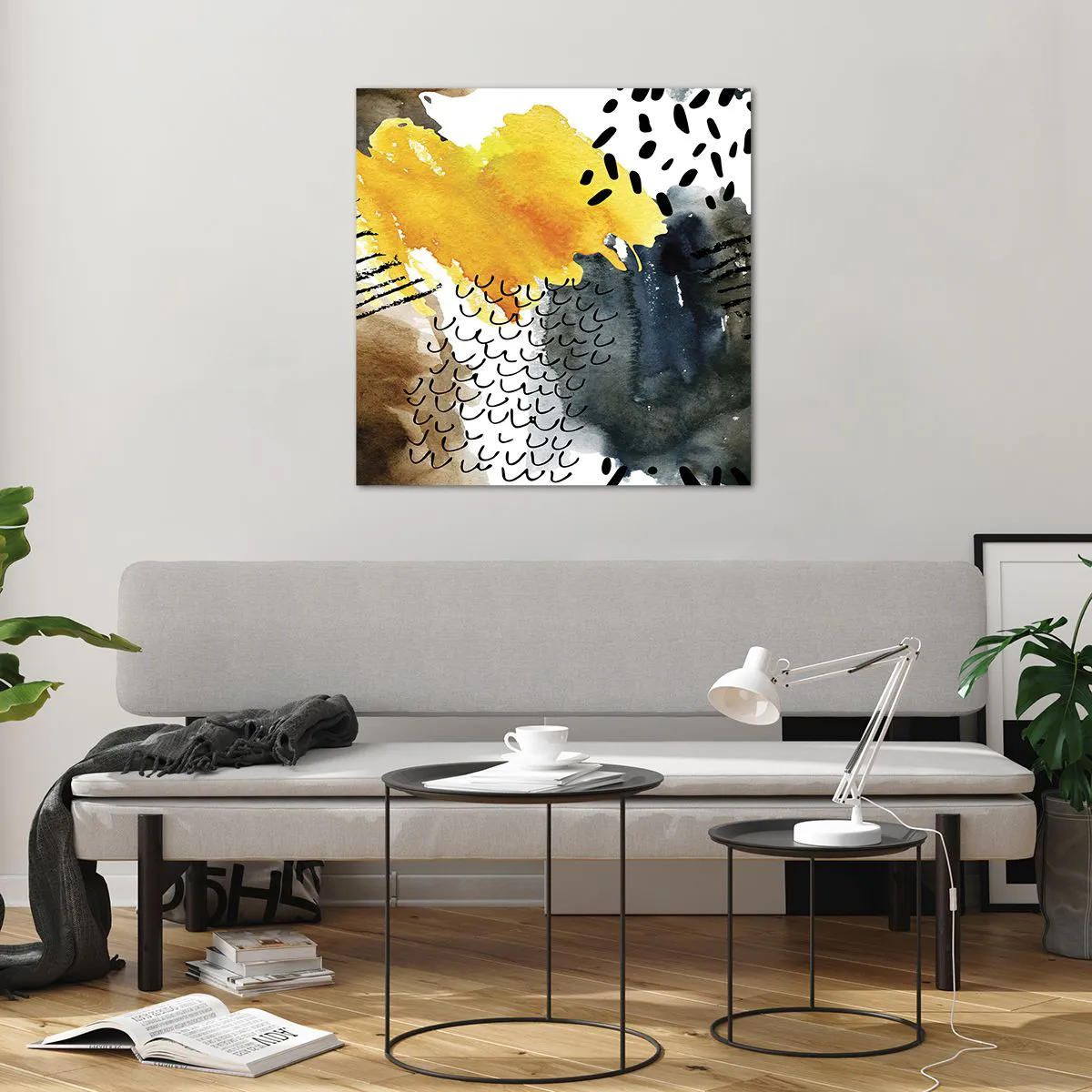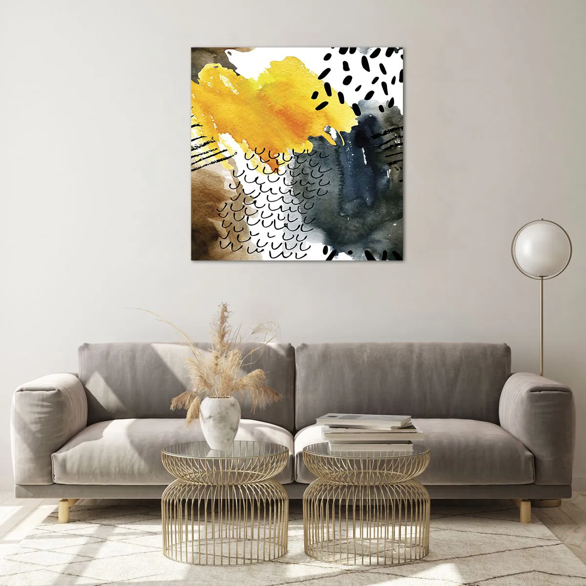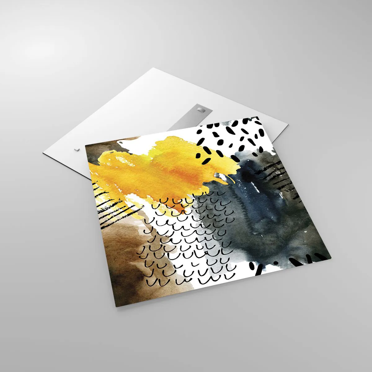 O quadro em vidro é feito de vidro de 4mm de espessura. As bordas do vidro têm um corte trapezoidal fosco. O quadro é segura de usar e pronto para pendurar – tem ganchos de metal presos à parte de trás do quadro e e espaçadores de espuma para regular a distância uniforme do quadro da parede.