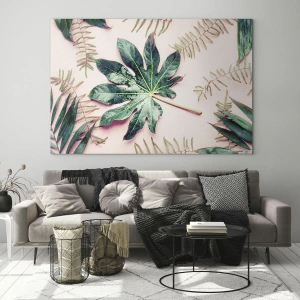 Quadro em vidro - Estudo do verde em um fundo rosa - 70x100 cm