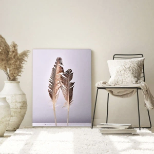 - Duas penas discretas sobre um fundo claro, simbolizando delicadeza e tranquilidade. Uma imagem perfeita para interiores minimalistas.