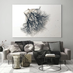 - Uma representação artística da silhueta de uma mulher cujos cabelos se transformam nos galhos ramificados de uma árvore. Esta pintura traz simbolismo e estilo único aos interiores, combinando a harmonia da natureza com a expressão humana.