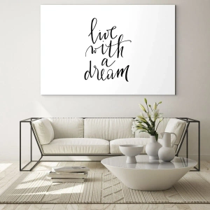Quadro em vidro - Citação "Viva com um sonho" em caligrafia elegante - 70x50cm - Of course - Decoração de parede moderna para a sala de estar e quarto ARTTOR