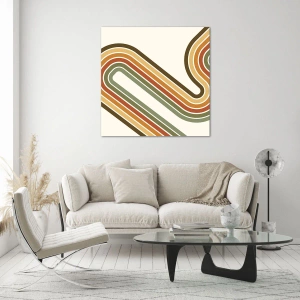 - Uma pintura elegante em estilo retrô com uma composição geométrica de linhas onduladas em tons quentes de marrom, laranja e verde. Sua forma minimalista e esquema de cores nostálgico adicionam personalidade a qualquer interior. Uma escolha ideal para i...