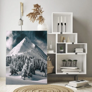 Paisagem de inverno não é apenas um símbolo de paz, mas também uma incrível combinação de cores e contrastes. A neve branca enfatiza a profundidade da paisagem, e as silhuetas escuras das árvores conferem à pintura um caráter dinâmico. Nuvens delicadas flutuando sobre o pico introduzem um elemento de mistério e um sutil jogo de luz.