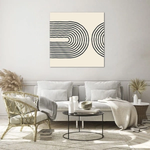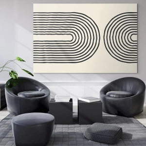 Quadro em vidro - Uma pintura abstrata em preto e branco representando linhas em forma de arco. - 70x50cm - Em um momento... - Decoração de parede moderna para a sala de estar e quarto ARTTOR