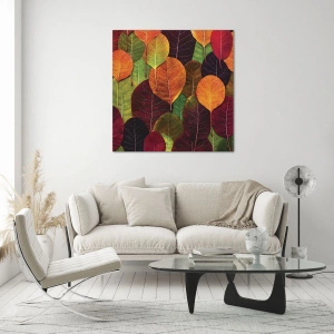 Este motivo único da natureza traz uma sensação de aconchego e nostalgia associada ao outono para o interior. "Mosaico de Outono" é perfeito para ambientes dominados por um estilo boho natural, bem como em interiores modernos como uma expressão de expressão artística. Graças às suas cores intensas, a pintura atrai a atenção e se torna o ponto focal do arranjo.