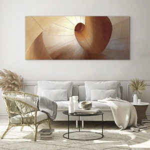 Quadro em vidro - Estrutura arquitetônica em espiral de madeira em cores quentes - 70x50cm - Serpentina arquitetônica - Decoração de parede moderna para a sala de estar e quarto ARTTOR