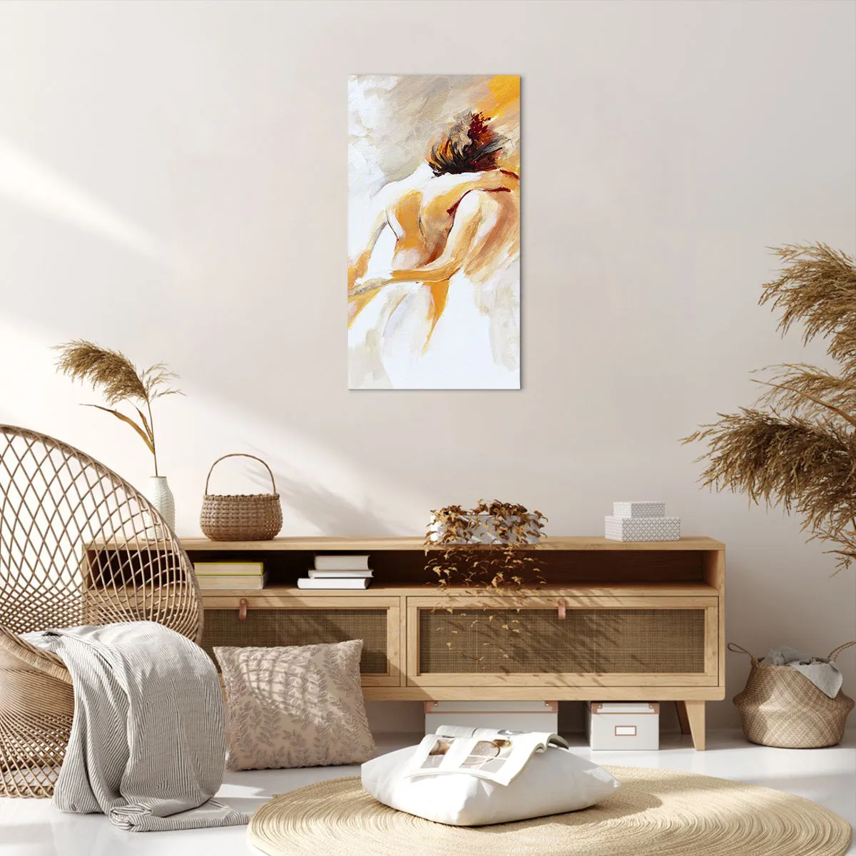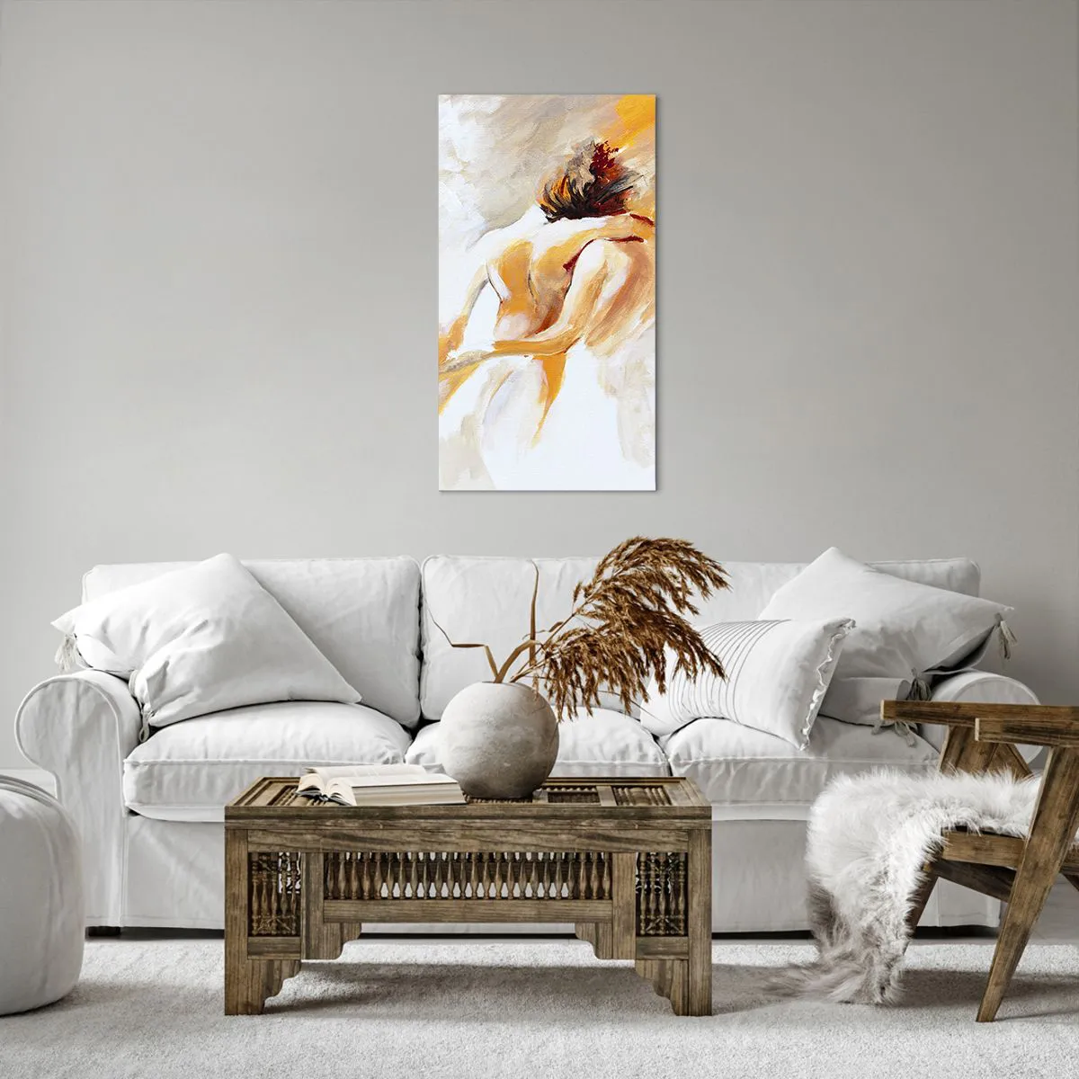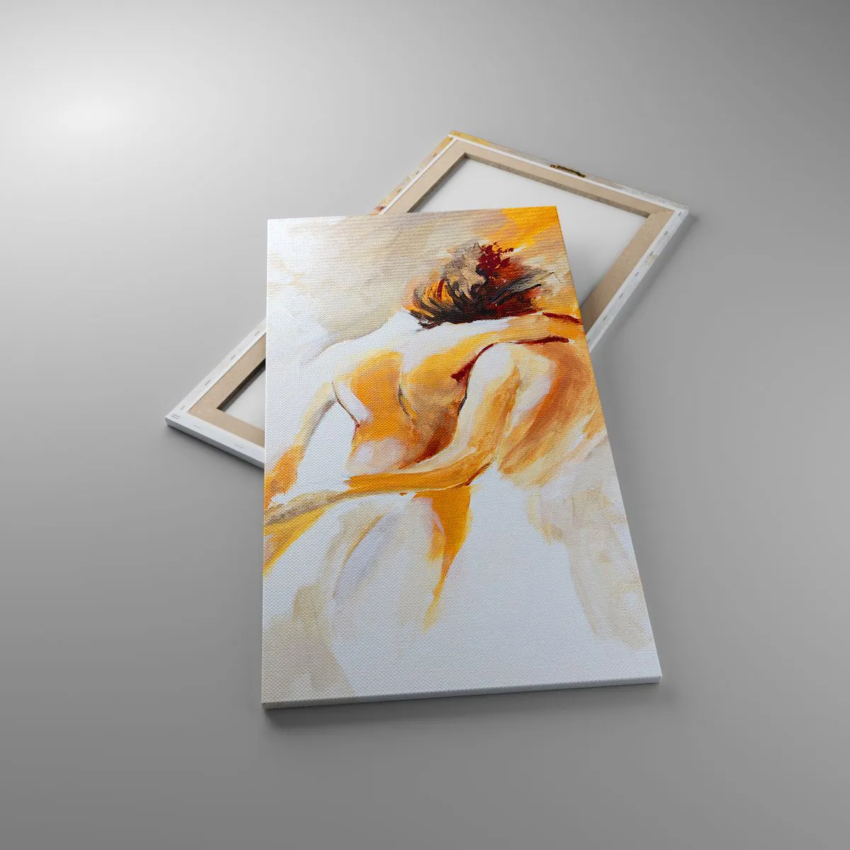 A tela é esticada na moldura. Os lados e bordas são impressos para criar uma continuação da imagem. O quadro está pronto para ser pendurado na parede. Cada produto tem um gancho ligado à moldura e um conjunto de montagem (parafuso + cavilha).