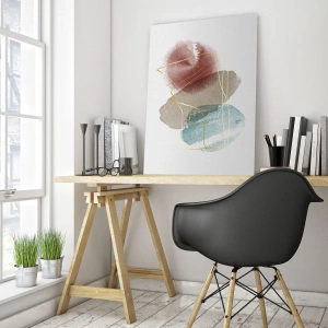 O quadro em vidro é feito de vidro de 4mm de espessura. As bordas do vidro têm um corte trapezoidal fosco. O quadro é segura de usar e pronto para pendurar – tem ganchos de metal presos à parte de trás do quadro e e espaçadores de espuma para regular a distância uniforme do quadro da parede.