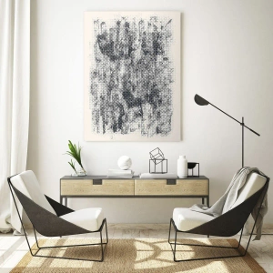 O quadro em vidro é feito de vidro de 4mm de espessura. As bordas do vidro têm um corte trapezoidal fosco. O quadro é segura de usar e pronto para pendurar – tem ganchos de metal presos à parte de trás do quadro e e espaçadores de espuma para regular a distância uniforme do quadro da parede.