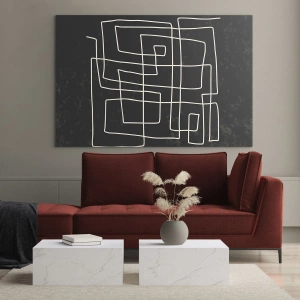 O quadro em vidro é feito de vidro de 4mm de espessura. As bordas do vidro têm um corte trapezoidal fosco. O quadro é segura de usar e pronto para pendurar – tem ganchos de metal presos à parte de trás do quadro e e espaçadores de espuma para regular a distância uniforme do quadro da parede.