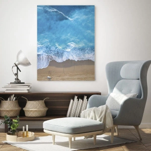 Quadro em vidro - Vista aérea da praia e das ondas quebrando - 70x50cm - O poder do azul - Decoração de parede moderna para a sala de estar e quarto ARTTOR