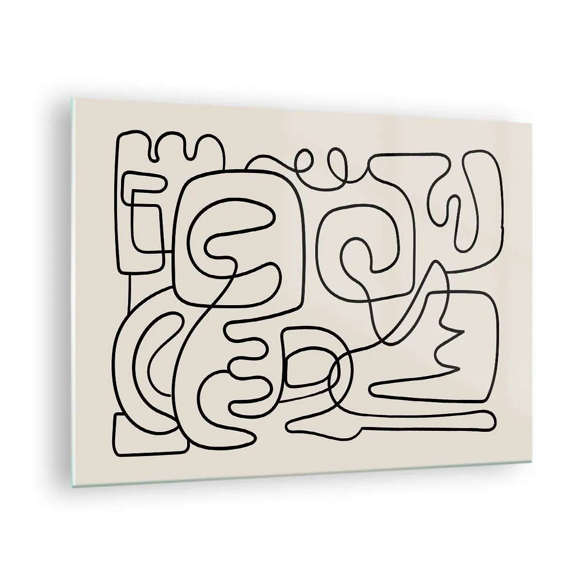 Quadro em vidro - Linhas abstratas pretas formam um padrão complexo em bege - 70x50cm - Na trilha - Decoração de parede moderna para a sala de estar e quarto ARTTOR