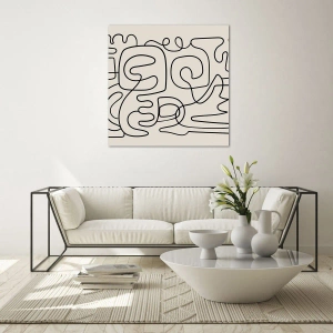 "On the Trace" é uma composição artística única na qual a simplicidade da forma assume um significado profundo. Linhas pretas serpenteiam sobre um fundo bege, criando um arranjo dinâmico, quase labiríntico, que atrai o olhar e estimula a interpretação. Esta é arte moderna em uma versão minimalista.