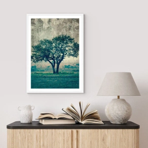 Pôster em moldura branca - Uma macieira num prado azul? - 40x40 cm