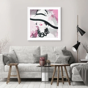Pôster em moldura branca - Retrato de uma dama a preto e rosa - 40x50 cm