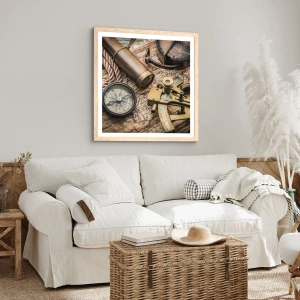 Pôster com moldura de carvalho claro - Definir um rumo - 40x40 cm