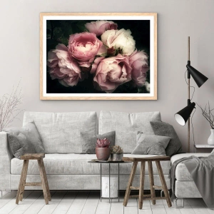 • Flores, Peônia, Buquê, Botânica, Flores, Para o escritório, Para o escritório, Para a sala de jantar, Para a casa de banho, Para o hall, Para a sala de estar, Para o quarto, Preto, rosa, Horizontal
