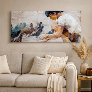 A tela é esticada na moldura. Os lados e bordas são impressos para criar uma continuação da imagem. O quadro está pronto para ser pendurado na parede. Cada produto tem um gancho ligado à moldura e um conjunto de montagem (parafuso + cavilha).