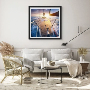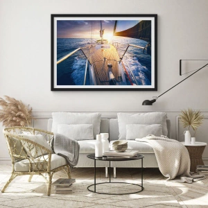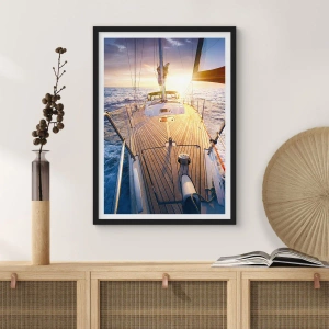 Pôster com moldura preta - Deck de iate com vista para o mar e o pôr do sol - 50x70cm - Correr sobre as ondas - Decoração de parede moderna para a sala de estar e quarto ARTTOR