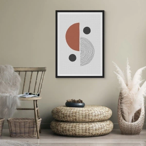 "Perfeição do Círculo" é um pôster moderno que retrata uma composição geométrica abstrata. A combinação de formas como círculos e semicírculos com linhas delicadas cria um padrão harmonioso que se encaixa perfeitamente nas tendências de design contemporâneo. Cores quentes animam sutilmente o espaço, adicionando elegância e um caráter moderno.