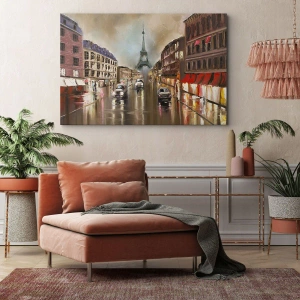 A tela é esticada na moldura. Os lados e bordas são impressos para criar uma continuação da imagem. O quadro está pronto para ser pendurado na parede. Cada produto tem um gancho ligado à moldura e um conjunto de montagem (parafuso + cavilha).