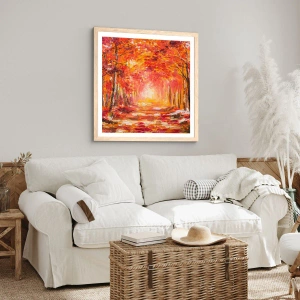 Pôster com moldura de carvalho claro - Floresta de cobre - 50x40 cm