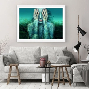 Pôster em moldura branca - Imersa em azul - 70x50 cm