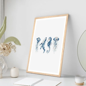 Pôster com moldura de carvalho claro - Maravilhas do mar - 100x70 cm