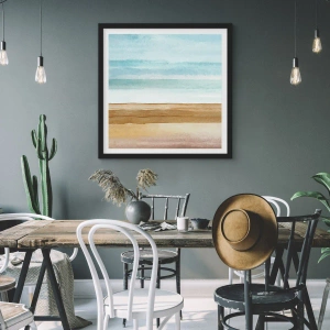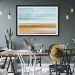"Paisagem Minimalista" é um pôster extraordinário que retrata uma paisagem minimalista em tons pastéis de azul, bege e areia. A sutil composição em aquarela introduz harmonia e tranquilidade, capturando a beleza da natureza de uma forma excepcionalmente estética. As linhas coloridas entrelaçadas evocam uma paisagem de praia e ondas suaves do oceano, conferindo à imagem leveza e elegância.