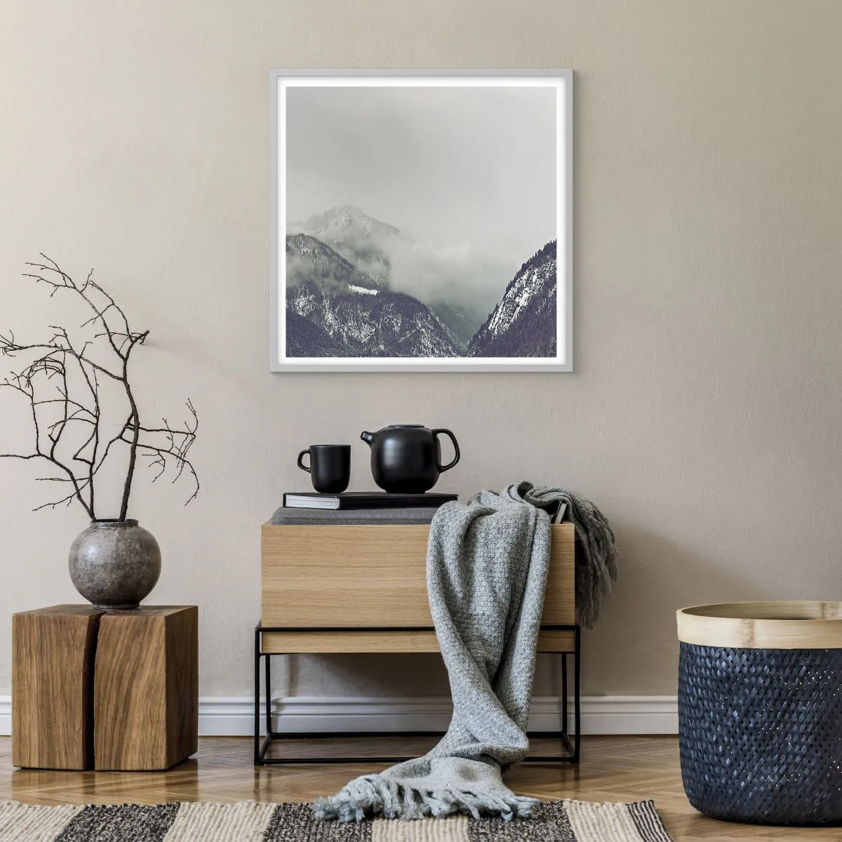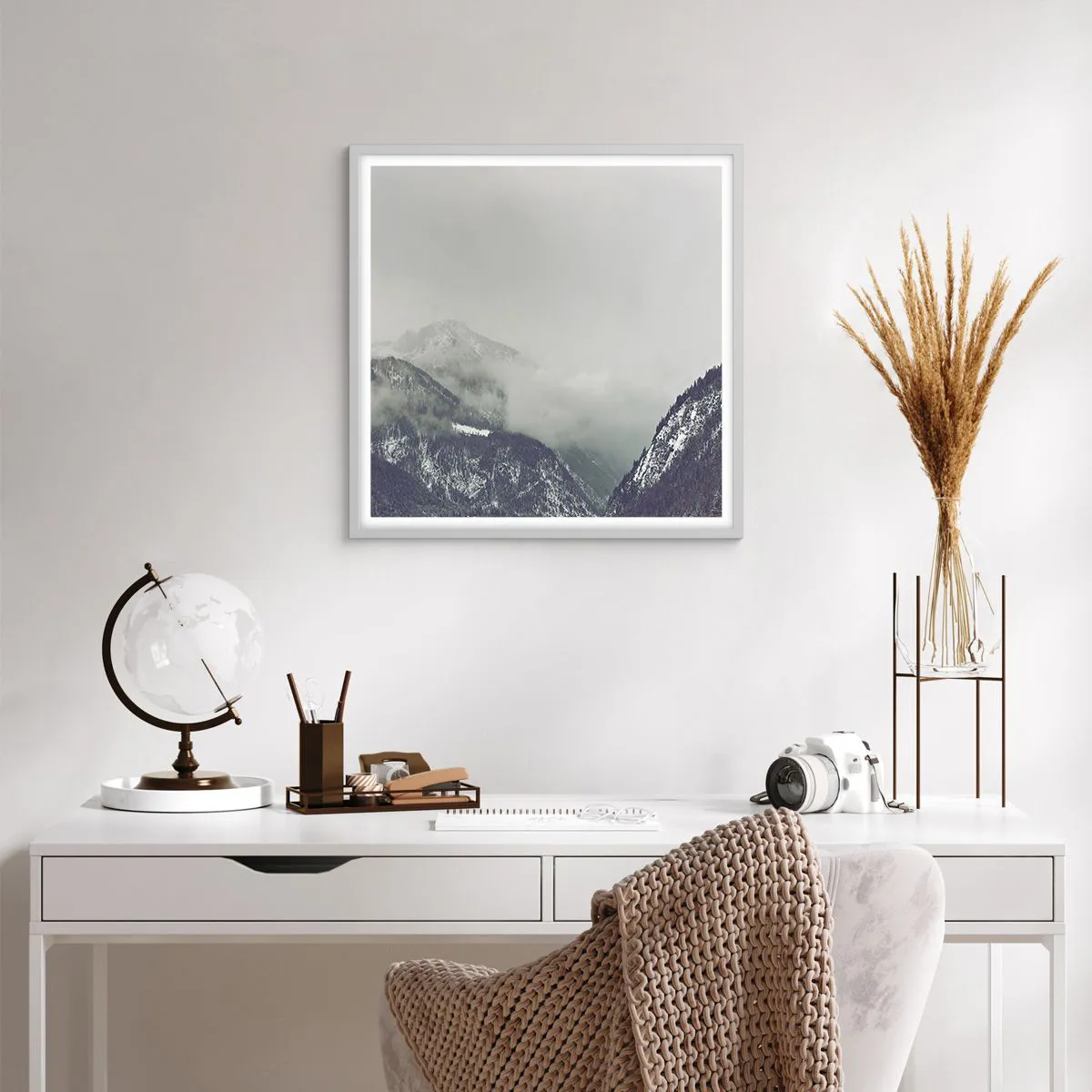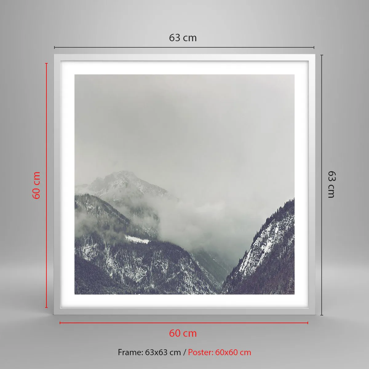 Pôster em moldura branca - Vale nebuloso - 60x60 cm