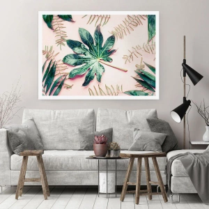 Pôster - Estudo do verde em um fundo rosa - 30x30 cm