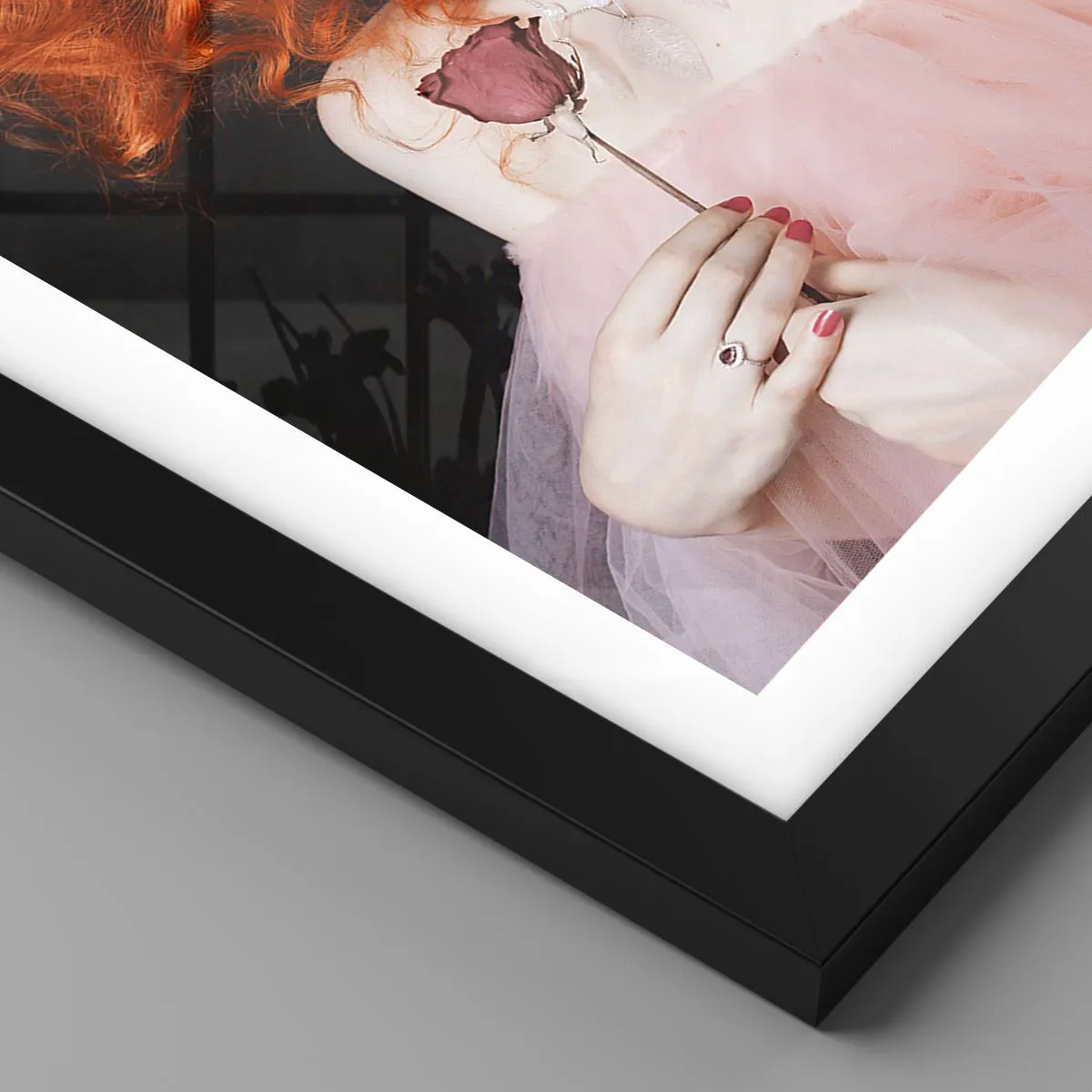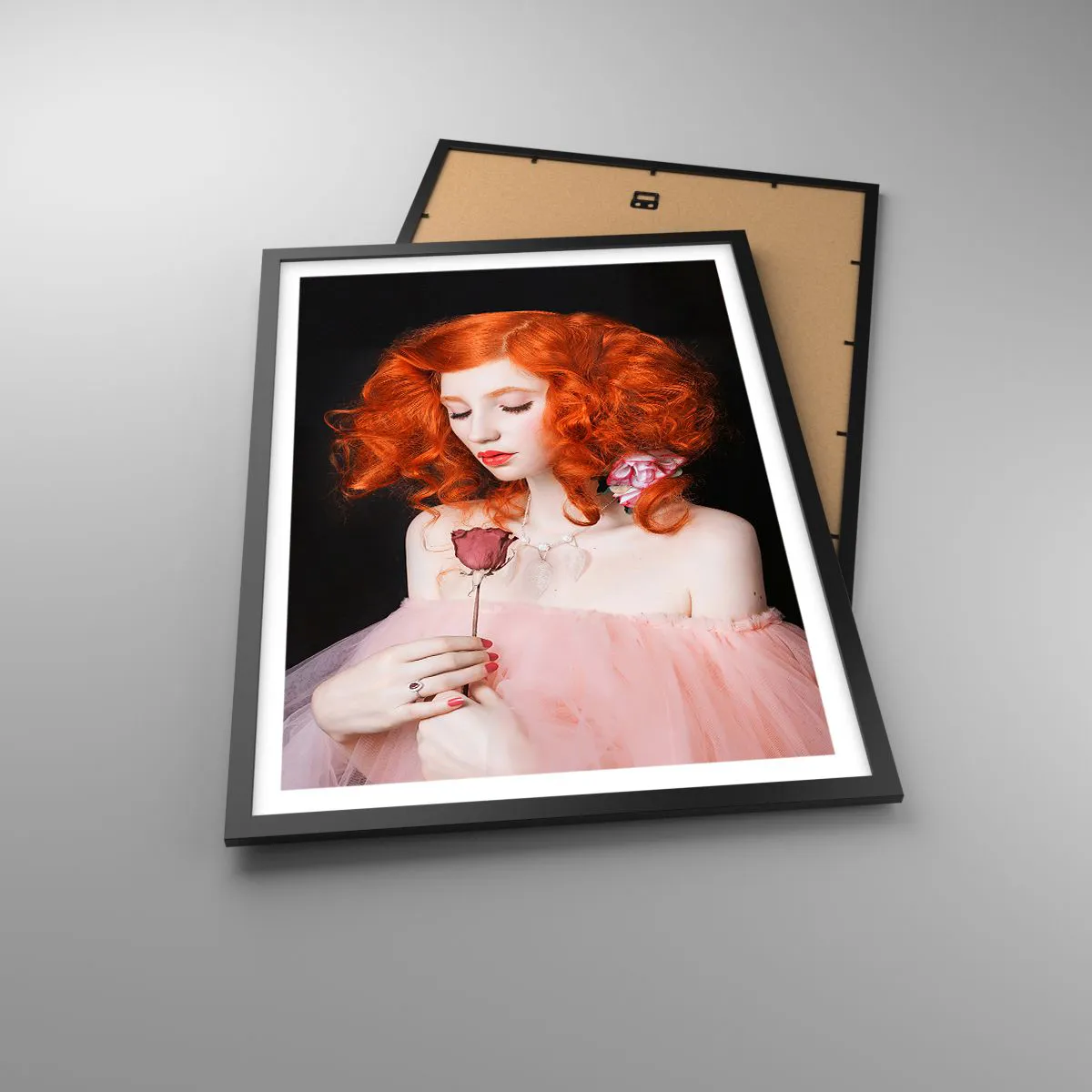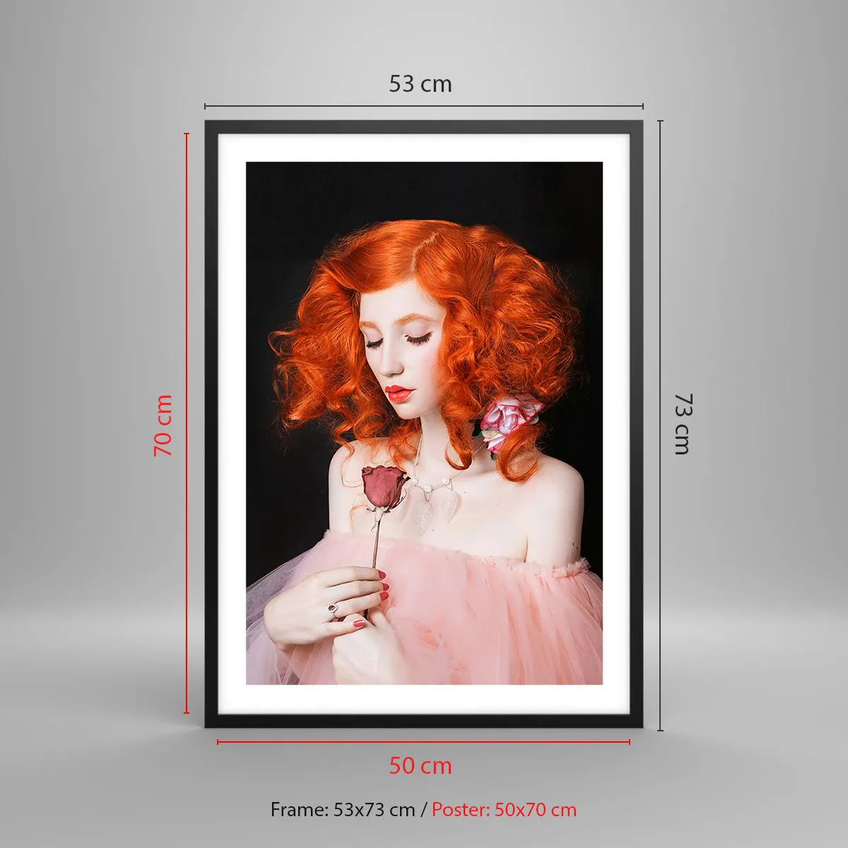 Pôster com moldura preta - Retrato de uma mulher ruiva com uma rosa sobre um fundo preto - 50x70cm - Em estilo barroco - Decoração de parede moderna para a sala de estar e quarto ARTTOR